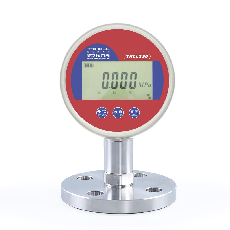 THLL320F法蘭隔膜型數字壓力表是采用了先進微功耗器件以及完善的軟件技術,內置的鋰電池可連續工作2年;大屏幕液晶顯示窗 ;五位顯示,十分醒目,非常適合于現場及實驗室使用 。