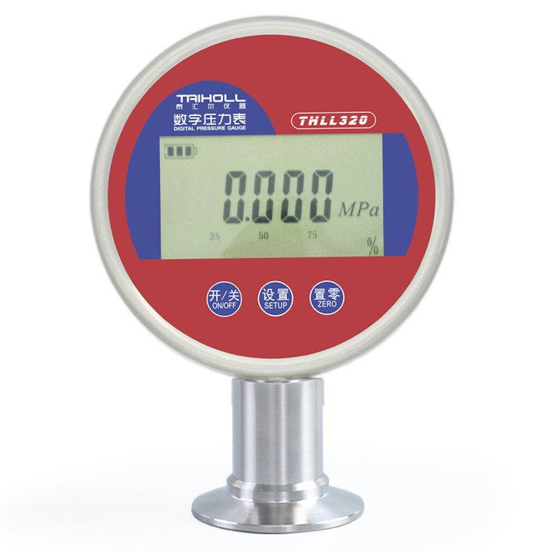 THLL320KF衛生型數字壓力表是采用了先進微功耗器件以及完善的軟件技術,內置的鋰電池可連續工作2年;大屏幕液晶顯示窗 ;五位顯示,十分醒目,非常適合于現場及實驗室使用 。