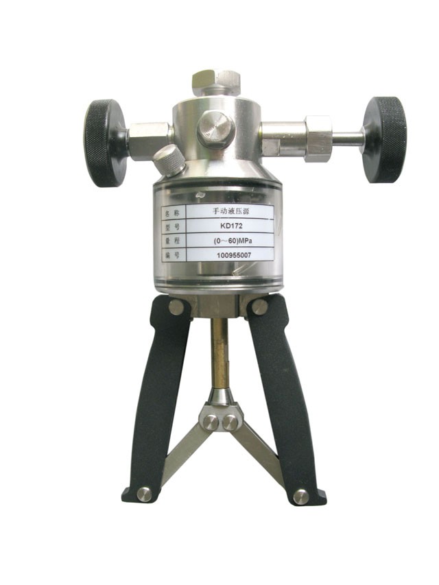 手操壓力泵是有手柄,活塞桿。透氣體,泵蓋,放油手把,微調手把,表接頭等組成。旋轉放油手把關閉放油閥,手握手操壓力泵手柄,用力握緊,放松反復進行,從而帶動活塞桿往復運動,活塞桿往復運動幾次就可以產生輸出壓力0-60Mpa。